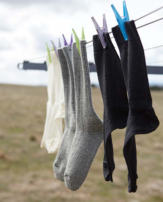 One of the major selling points for wool socks is that they don't need to be washed as often as socks made from other fibres, such as cotton or synthetics. By letting your wool socks air overnight, there’s a high chance you can wear them again the next day and they will continue to feel fresh and comfortable, and won't smell.