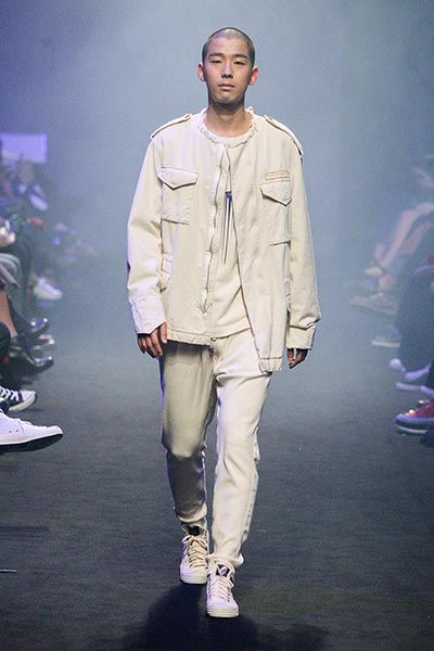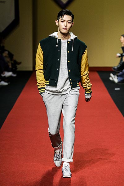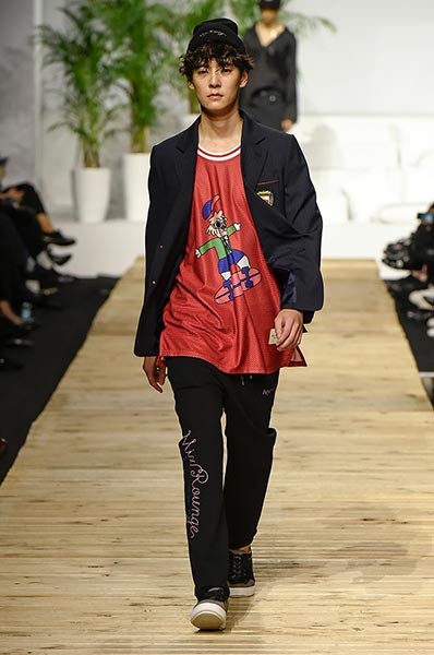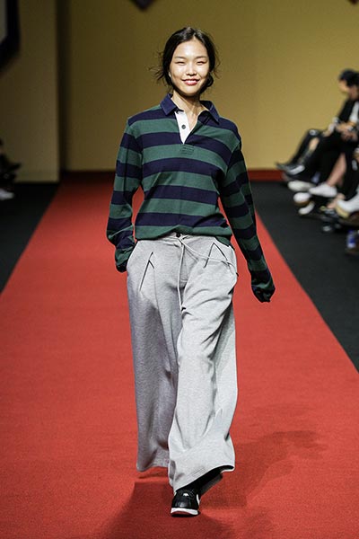 If Nohant travelled to a hotel in the last season with a travel-inspired collection, this time its focus was a university. With the catchword “Université de Nohant”, the fundamental basis of the spring 2017 collection was the Ivy League look from the United States. But a boxy shirt, a hooded parka, baggy denim overalls and a t-shirt with a logo “Université de Nohant” represented such a theme with wit. Nohant’s talents were observed through the matching of a navy wool blazer, a symbol of the Ivy League look, with a pair of orange Nike sneakers. Even when other brands were working on the same theme, Nohant’s apparel always stood out.