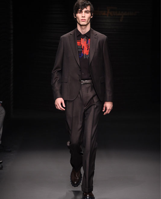 A look from the fall/winter 2017 collection of Salvatore Ferragamo. & A look from the fall/winter 2017 collection of Moncler Gamme Bleu.