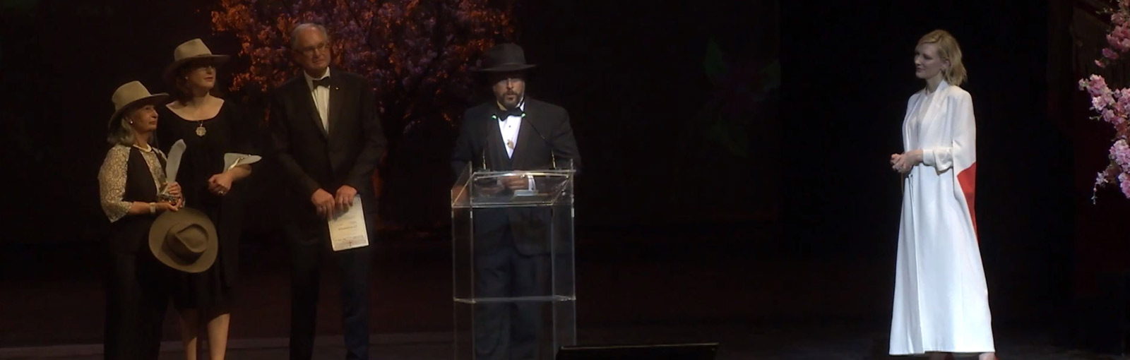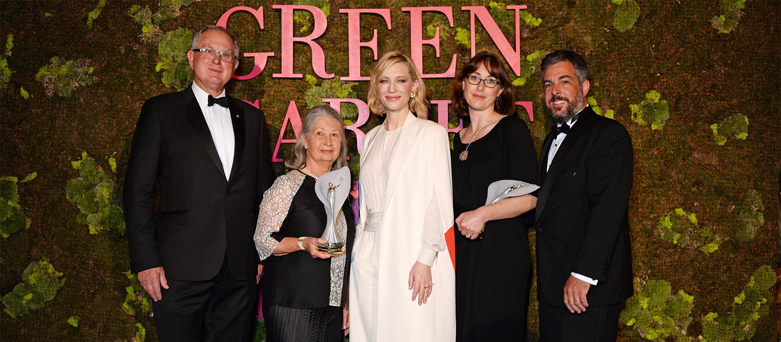 Oscar-winning Australian actress Cate Blanchett surprised four Australian woolgrowers by presenting them with the Eco Stewardship Award at the 2018 Green Carpet Fashion Awards, Italia.