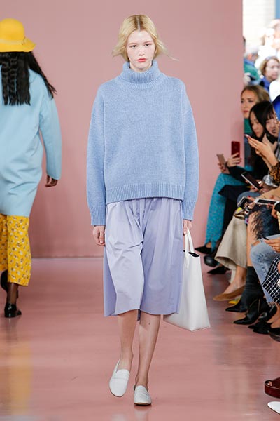 Two brands who also share relatively classic propositions, Mansur Gavriel and Ralph Lauren, presented direct-to-consumer collections, meaning their warm and woolly Autumn-Winter 2017 garments that are now already available in stores and online, and interrupted a week of sprightly spring-summer collections. And this wasn’t the only way they stood out, as it was in fact the first ever garment release from Mansur Gavriel, the young brand that shot to popularity with it’s much coveted bucket bags just a few years ago. Since then, design duo Floriana Gavriel and Rachel Mansur stretched from bags to shoes, and now to garments; specifically, generously cut but aesthetically reserved coats and knitwear. As with their accessories, the designers have paid particular attention to colour - offering each style in up to six colourways – and to quality materials, where coats are double faced in fine fabrics, including Italian extra fine Merino wool and a wool-cashmere blend.