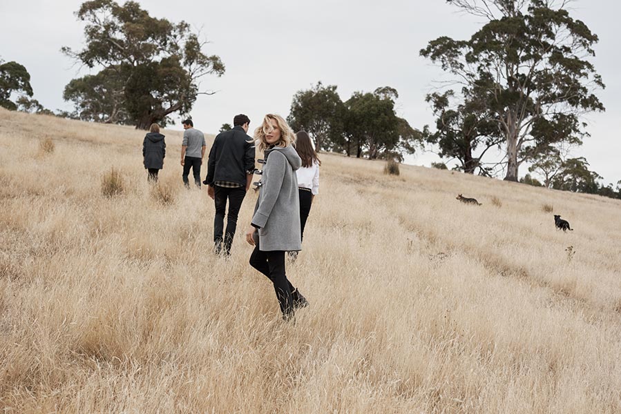 In celebrating its wool-rich winter collection, Country Road journeyed to Bruny Island, off the coast of Tasmania, where a dramatic, rugged landscape plays home to a flock of free-roaming Merino sheep and appears as a backdrop to the natural yarn used in the men’s, women’s, children’s and home collections for the season.