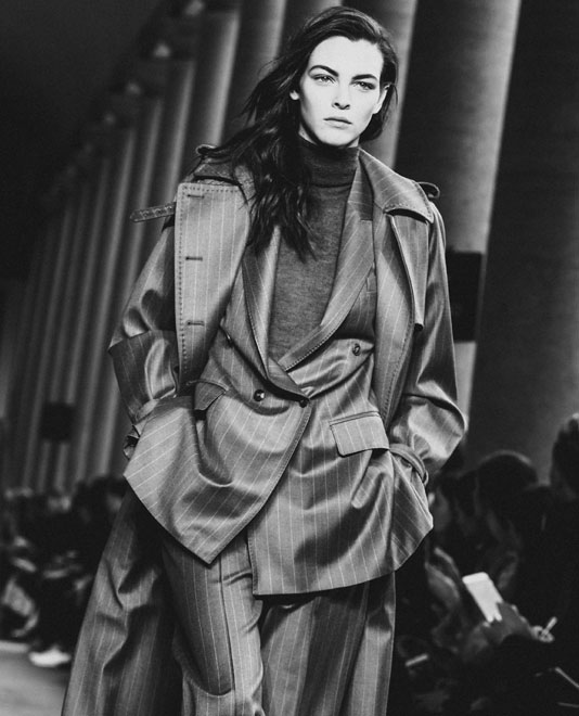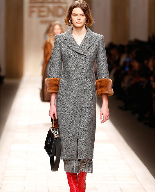 Max Mara returned to its roots this season, capitalising on the single piece of fashion that made it so famous the world over: the camel coat. But with a 42-look collection, it expanded the notion of what classic simplicity means today, with garments that were flattering yet wearable. This is included loose-fitting cable-knit turtleneck sweaters, shearling overcoats, double-breasted pinstripe wool suiting and tweedy trench coats. Prada, too, looked to its past, although its DNA is significantly different. Here we saw crochet-like bra tops and knitted workman’s caps, patchwork coats, and wool twinsets in diamond argyle in knits. Fendi mixed contrasting fabrics, too, with wool overcoats featuring fur cuffs, checked wool blazers paired with silk skirts, and wool one-piece suits worn over sheer tops.