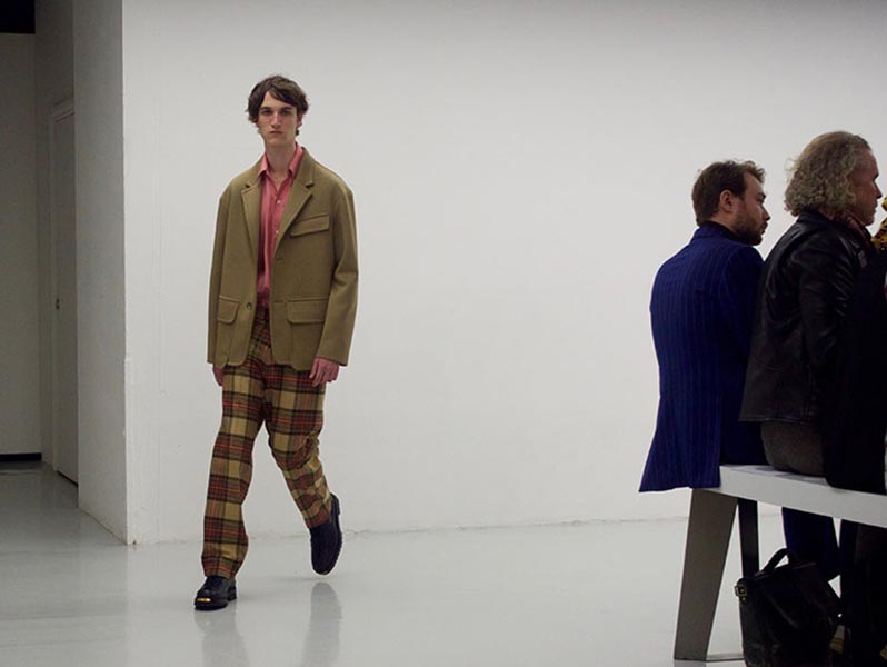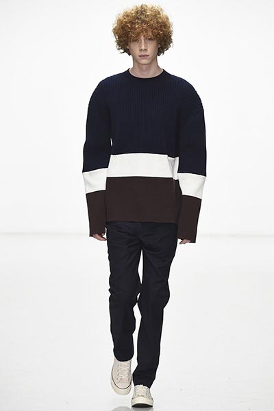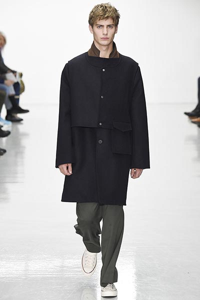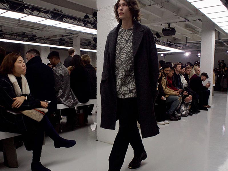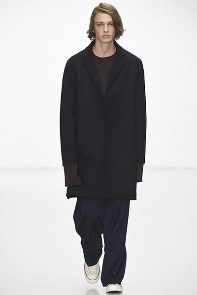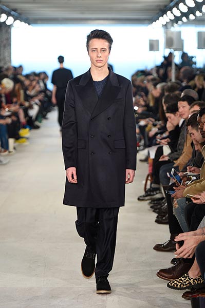 Perhaps, as a female, Lou Dalton designs for how women might like men to dress – understated, classic, masculine, without being overtly so – because every season there’s a certain elegance in her work that’s often missing from the raft of attention-seeking runway shows.  That was certainly the case in her autumn/winter 2016 collection, in which Dalton showcased her unique brand of classic garments, each rendered in traditional fabrics (if not finishes) with the most subtle of sartorial updates so as to make them feel fresh. Coats, for example, were slightly oversized, but not comically so. Trousers were slouchy, but definitely not baggy. And her Merino wool polo necks and sweaters – crafted in collaboration with renowned British knitters John Smedley – featured unique geometric patterns that drew the eye in.