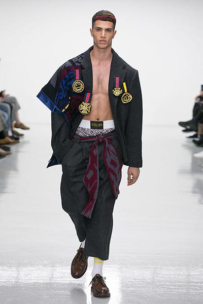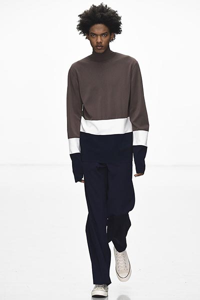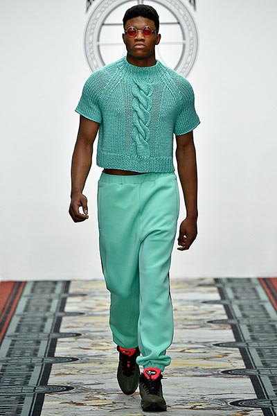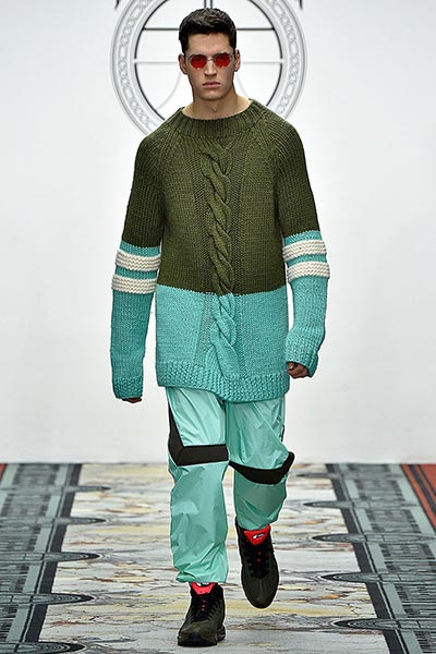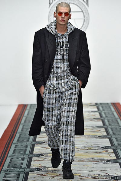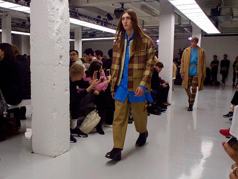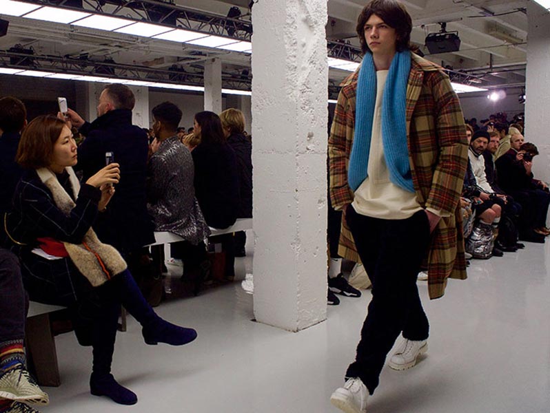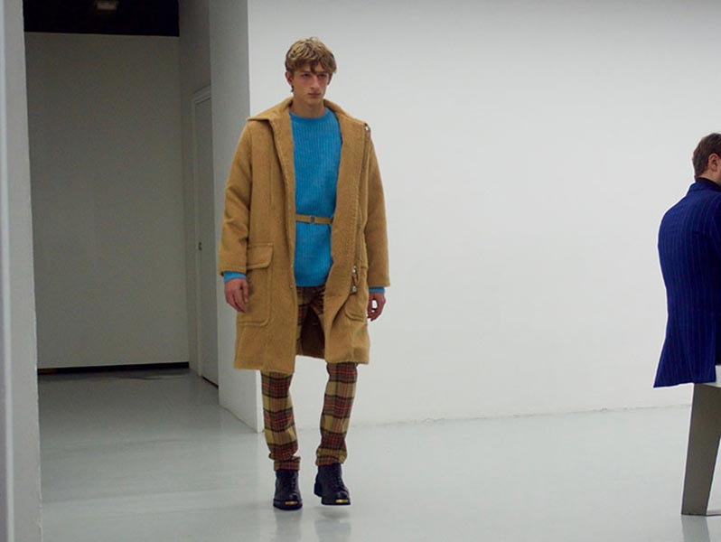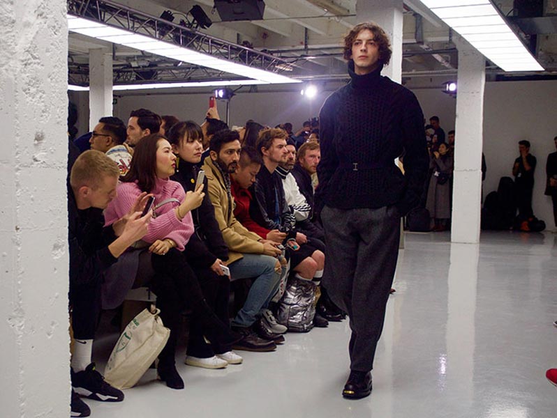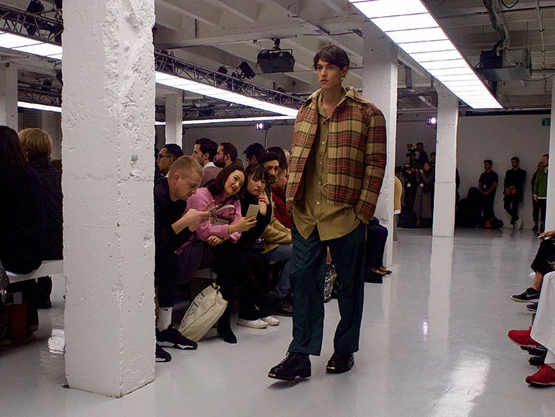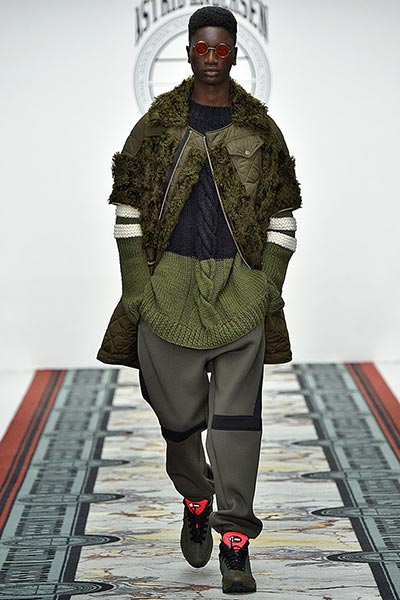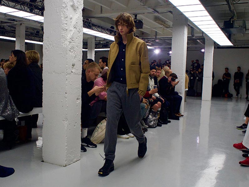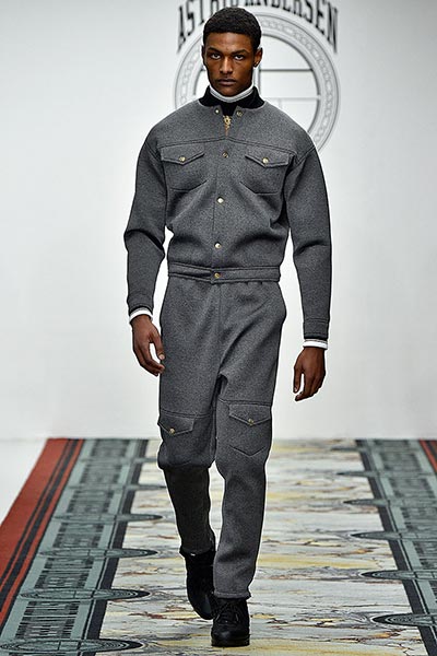 That London Collections Men is typically split into two camps – the tailoring of Savile Row institutions and the hip streetwear of the new guard – is something that Astrid Andersen evidently set out to challenge by marrying the two. Here, the designer blended trademark sportswear references with tailoring. The result? A most appealing collection of wool tracksuits, bomber jackets and padded vests, all finished with golden press-studs, alongside chunky but lofty knitwear and languid wool overcoats.