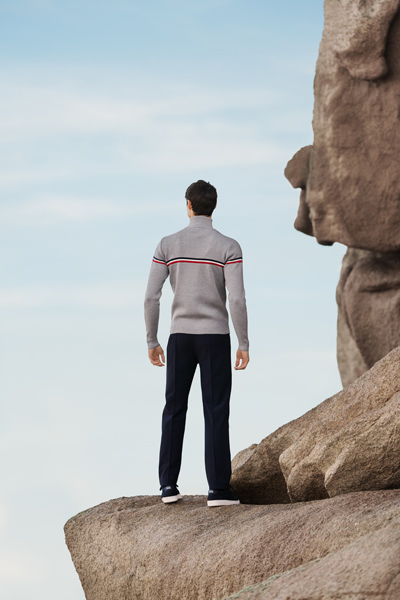 The WENGEN III sweater and its zipped version WENGEN FIZZ II are two iconic clean-lined Fusalp styles that feature the red, white and blue heritage piping of the brand. They are both available in dark blue, light grey and heather macaron.