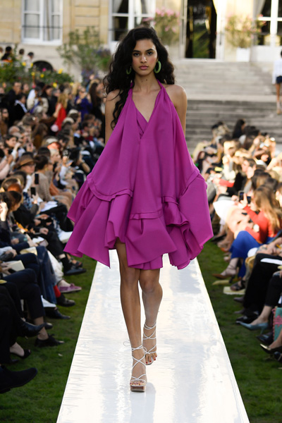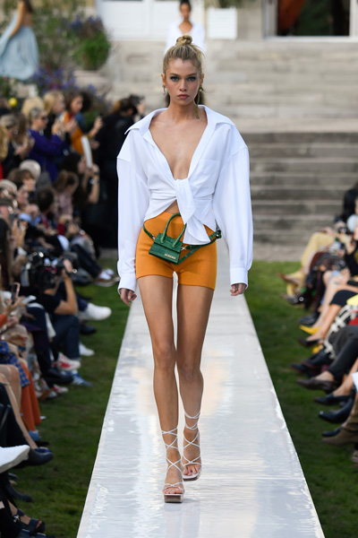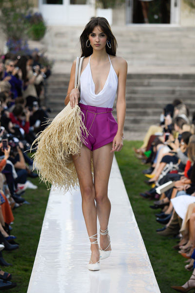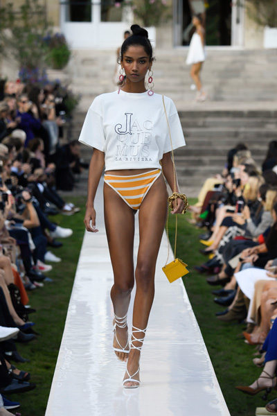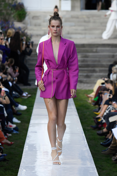 Plunging necklines mixed with Cool Wool tailoring and second-skin knitwear teamed with micro-hemlines strutted the garden catwalk, as 28-year-old Simon Porte Jacquemus once again paid homage to his beloved south of France, with La Riviera. His beach-to-bar collection was full of Mediterranean vibes, designed for hot climates.