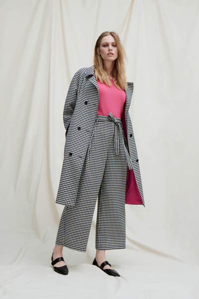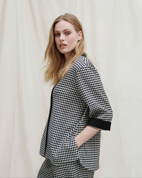 Black and white dominates the collection both in solid tones and in large and small chequered designs, interrupted only by the fuchsia of a sweater, contrasting stitching and linings, a common thread that adds a touch of sweetness and femininity. The lettering B.W. on some knitwear garments is the decorative element that discreetly defines the stylistic signature of the capsules. Machine washable, the collection can be looked after with ease.