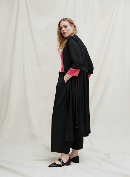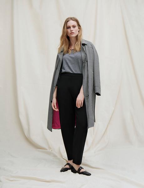 Selecting the finest Woolmark-certified yarns, the resultant collection offers classic knits and technical wool outerwear to create easy-care garments including dresses, a trench coat, trousers, skirt, tunic, sweaters, cardigan, poncho and jumpsuit.