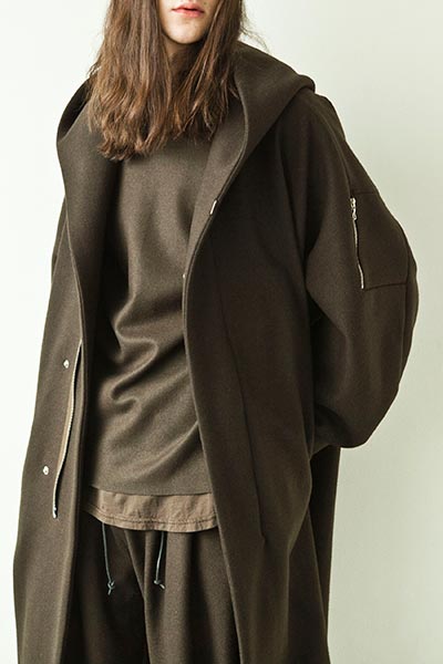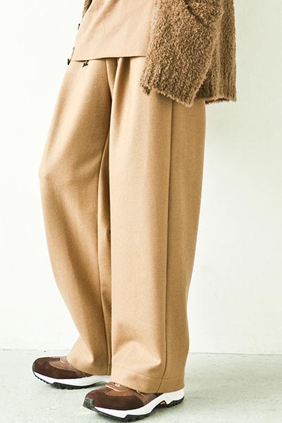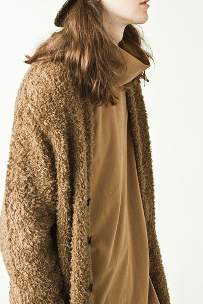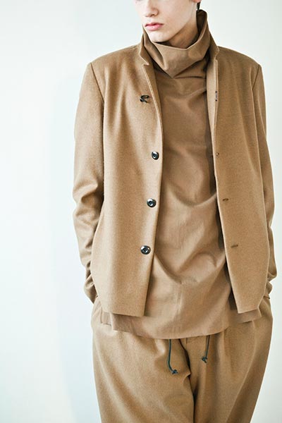 “The appeal of wool is that it can change to suit various expressions whilst retaining high heat retention,” explains Kamugai of the collection, which arrived in ATTACHMENT’s various Japanese boutiques this week. “It can have a soft feel with thanks to the fineness of the yarn, but it can also be fulsome, and form a great coat with a sturdy quality. It can have a luxurious feel, too, or something unique by mixing it with linen or hemp. Wool has infinite possibilities, and I believe that it’s still possible to create new types.” ATTACHMENT’s Woolmark-certified capsule collection comprises 24 pieces, including thick wool melton coats, a specialty of the label, as well as wool flannel pants and knitwear in a neutral colour palette of brown, beige, grey and black, all showcasing the beautiful texture of Merino wool.