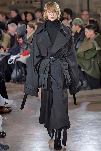Trench coats represent classic menswear. With a little modification in design, the overall result is dramatic. To me, that is very interesting. Also, I personally think that out of all fashion items, trench coats have the most perfect shape. They are intense, dramatic, and look masculine, which cannot be found in other garments.