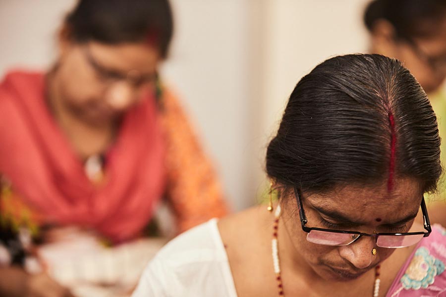 Employees at the Bhuttico workshop in Kullu, India.
