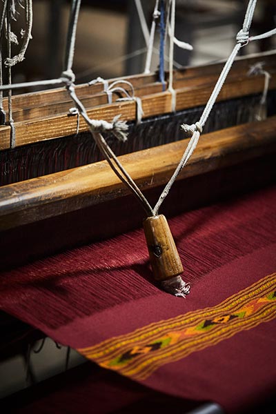 Hand-loomed wool textile at the Bhuttico workshop in Kullu, India.