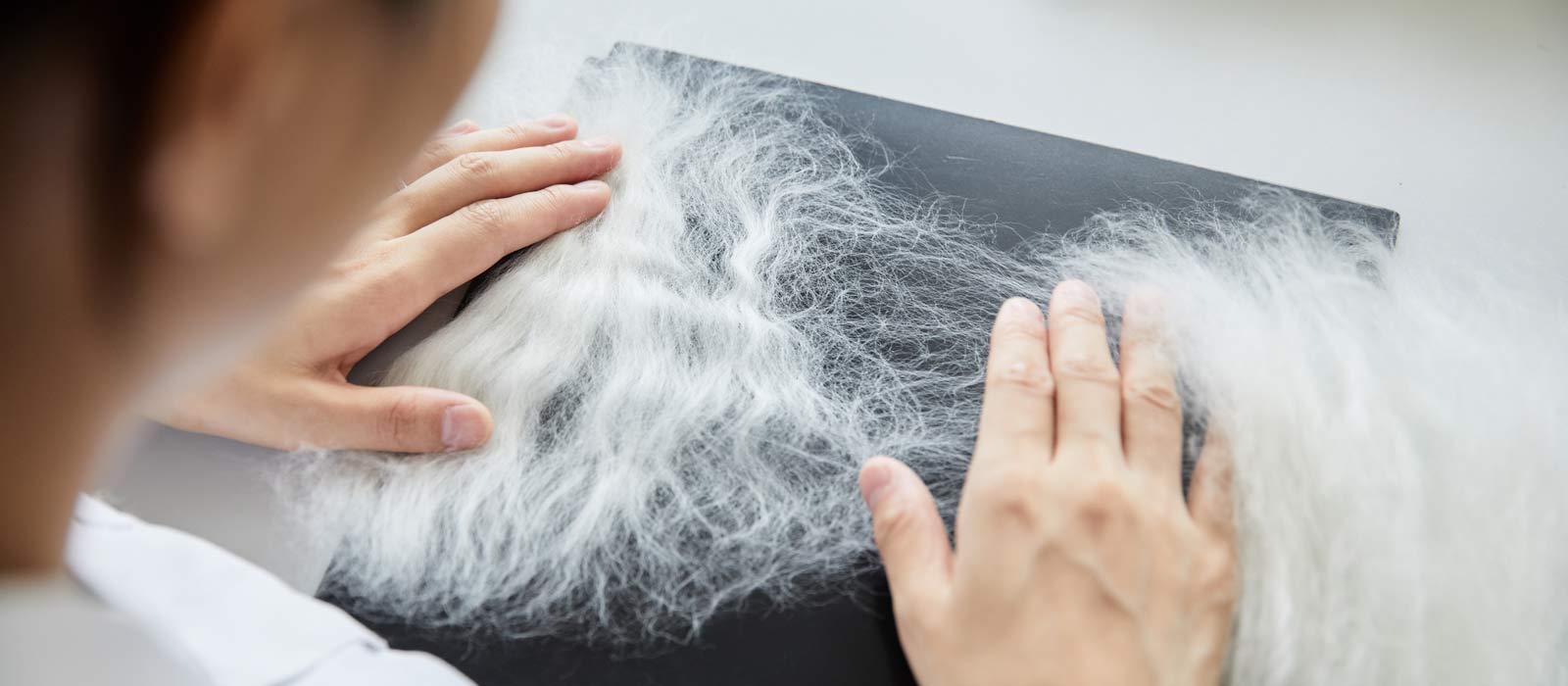 Wool – along with alpaca and cashmere – has a unique scale structure, with differing patterns depending on the animal which they come from. Cellulosic fibres – cotton, silk and linen – and synthetic fibres such as polyester do not have these unique scales. These scales are important for protection, felting behaviour and the handle of finished products such as apparel. They also provide a natural water-resistant surface.