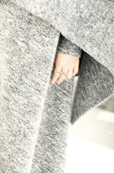 One of the most outstanding pieces in HYKE’s own latest collection is a coat made of milled wool. Despite being thick, 100 per cent wool, the coat is soft and light with a feminine delicacy. Natural fabrics like wool, cotton, and hemp have been a defining feature of Yoshihara and Ode’s handiwork since their days in Green, but recently they have also apparently been working more with mixes of natural and synthetic fibres. “I would say that we work with natural materials comparatively often. In the past we were recreating the fabrics found in vintage clothing so anything and everything had to be natural.”