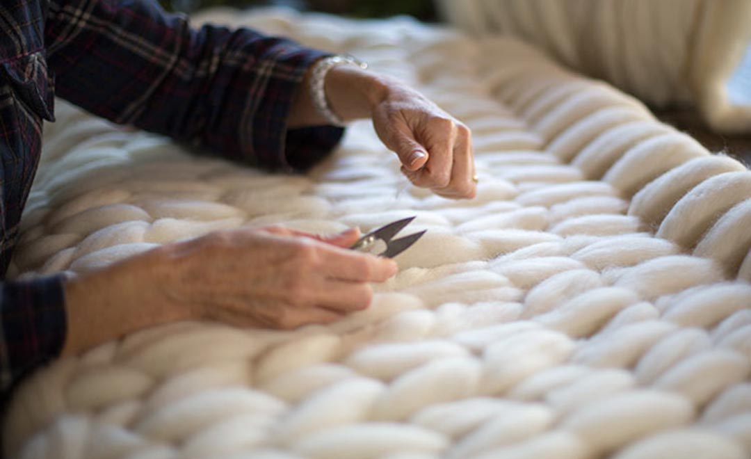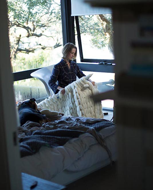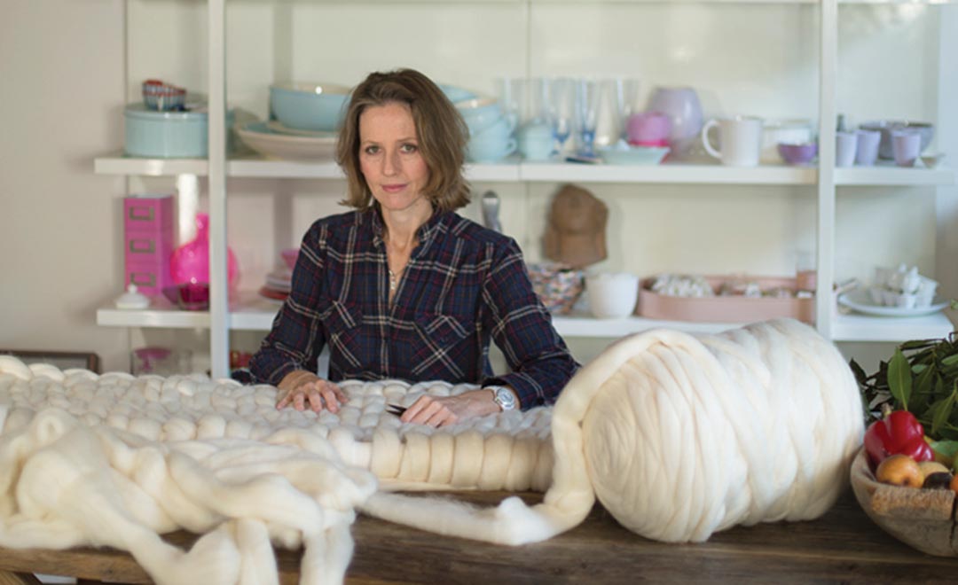 Hand crafting stunning blankets, throws, wall hangings and home furnishings, Fink is taking knitting to the max - it’s her quiet rebellion against mass production. Sourcing fine quality, luxurious Australian Merino wool direct from a farm gate in South Australia, Fink fell in love with this fairy floss-like fibre right from the get-go.