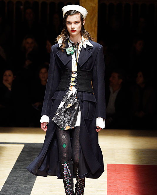 A look from Burberry fall/winter 2016. & A look from Prada fall/winter 2016.