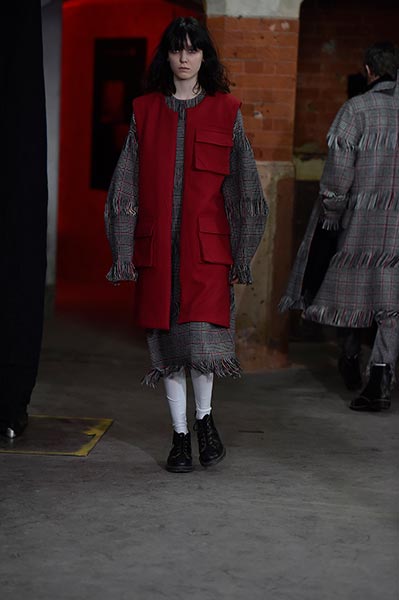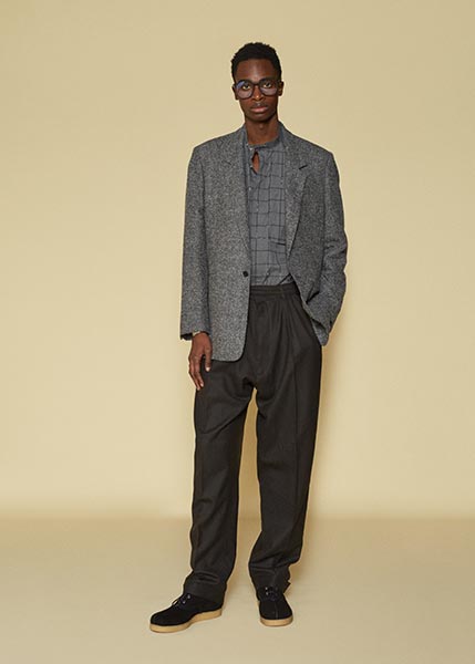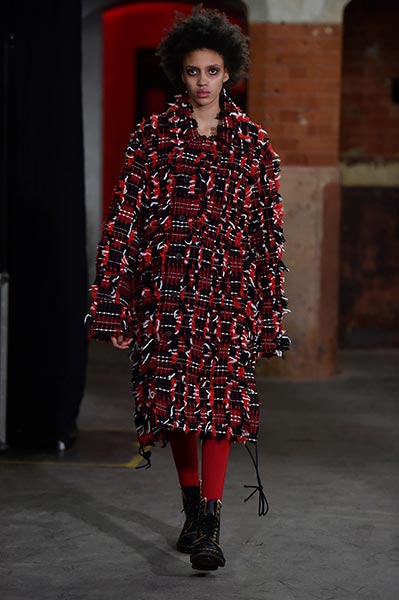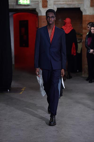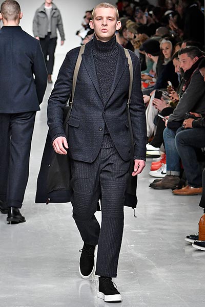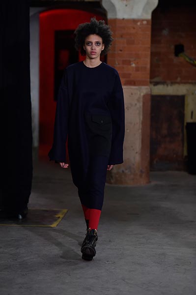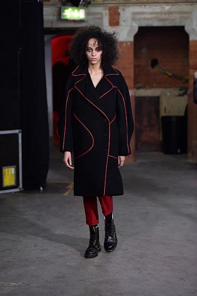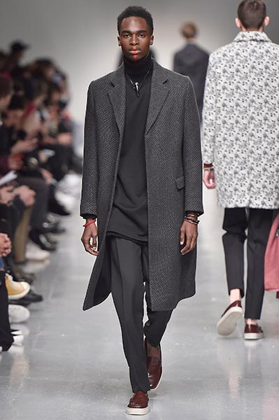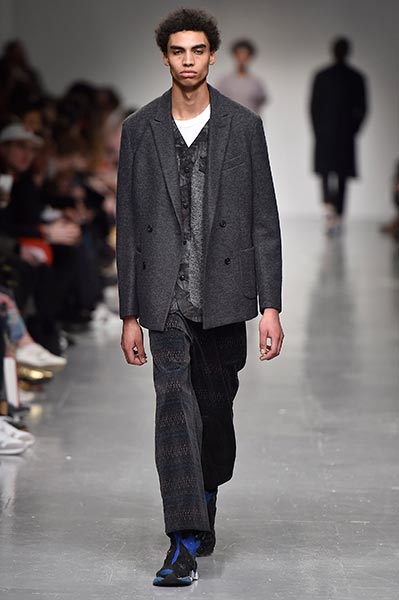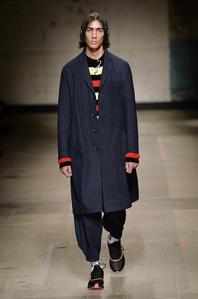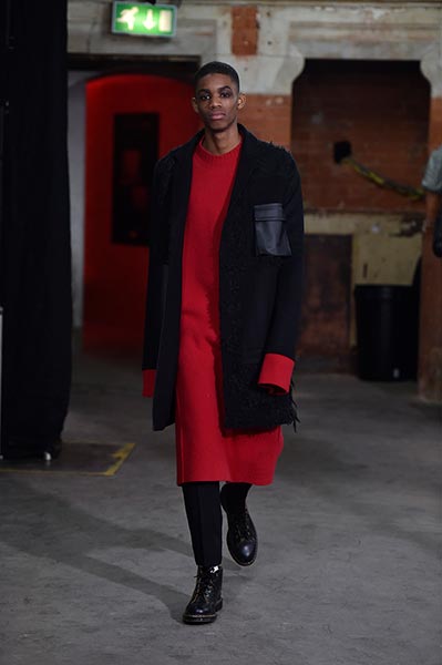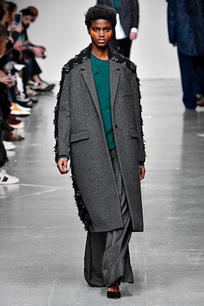 Casely-Hayford knows tailoring, and it showed in this collection in which Hayford senior (Joe) celebrated 30 years in the business by ushering in a fully-fledged women’s line alongside the typical menswear offering. Highlights included felted grey wool overcoats with tassel-like embroidery slicing its centre (a similar effect showed up in a two-piece suit) and military-style wool coats in deep navy.