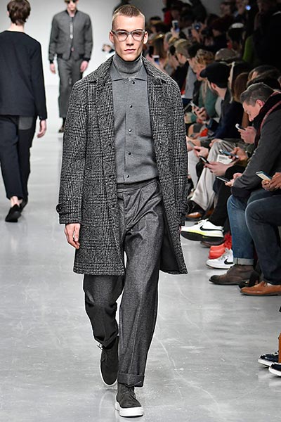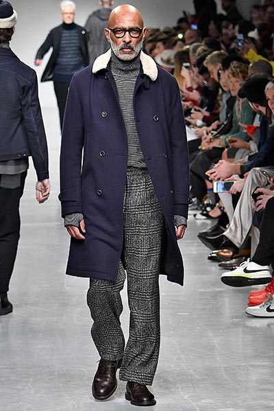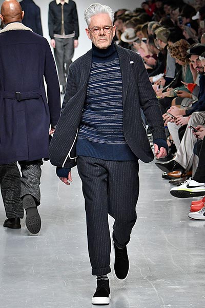 British designer Oliver Spencer proved that he is an outfitter to customers of all walks of life in the most simple but effective way: by showing his fall/winter 2017 collection on the backs of a unique diverse cast, many of them friends, in his show. It’s one thing to see an outfit in a catalogue of polished models, but to see it worn by someone of your own shape and size and age makes it easier for customers to identify with garments, and Spencer was able to show the absolute breadth of his designs, from the youthful (knitted wool turtlenecks and utilitarian-style trousers) to the more refined (double-breasted wool coats and herringbone-check wool trousers), to the classics that suit just about everyone (wool cable-knit sweaters and pea coats among them).