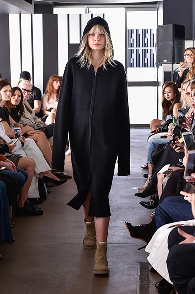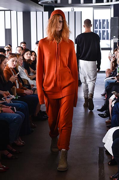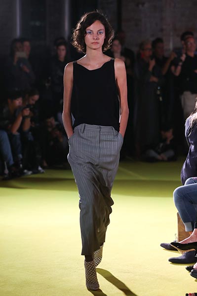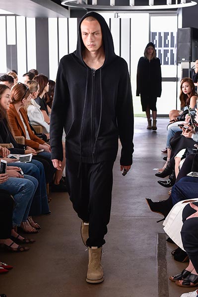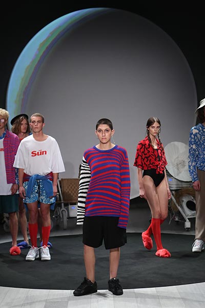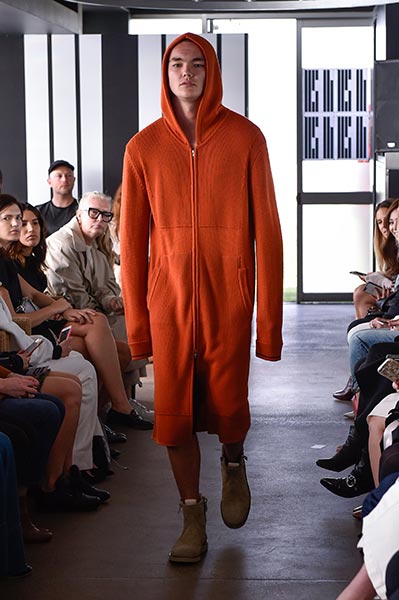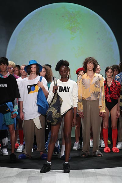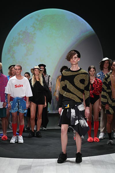 Bondi-based label Ten Pieces explored fabrications to deliver a collection stamped with vertical prints influenced by industrial architecture and landscapes. Its sporty punk muse has a more refined overall look, suggested through detailed finishes. References to Sharpies see the collection having a raw and quintessentially Australian edge. Collaborating with The Woolmark Company for a Ten Pieces Merino wool jersey collection and Ten Pieces knitted Cashwool® pieces, the special edition collection comprised soft earthy colours, offsetting the black and white staples and reinterpreting the Ten Pieces signature silhouettes.