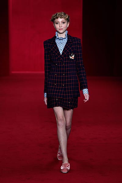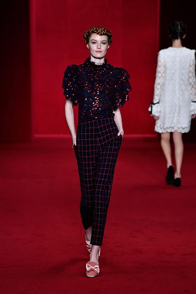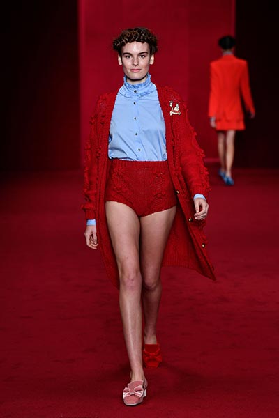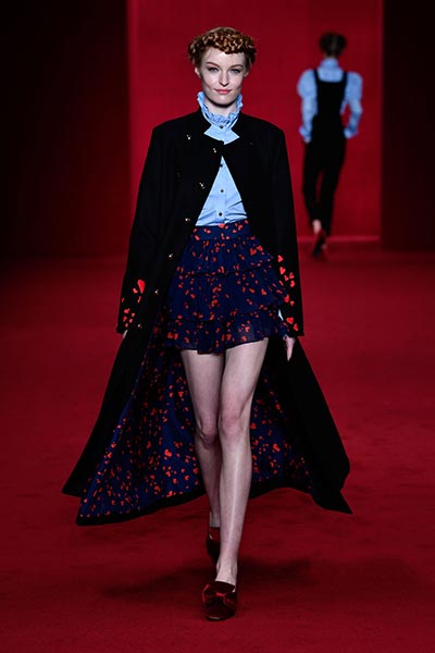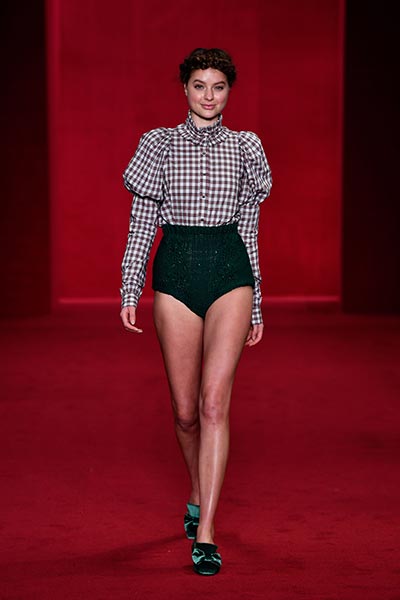The collections of Sydney-based womenswear label macgraw always err on the side of romance in their aesthetic, but this season the designers, sisters Tessa and Beth MacGraw, took it a step further, making the resort 2018 a Love Letter, as the show was titled. “This year has seen our business grow in so many ways and, in turn, we have grown,” they explained backstage. “We wanted this collection to be a love letter of sorts.” Following their presentation as part of the International Woolmark Prize global final in Paris earlier this year, the designers continued working with Merino wool, collaborating with the Country Women’s Association and Purl Harbour on a series of hand-woven embellishments – darned harts, swans and other motifs – that were applied to 100% Merino wool blazers and cable-knit cardigans. The resultant aesthetic was of preppy Britishness but with a slight punk attitude; “an English rose, youthful and elegant, though not defined by her heritage,” the designers said.