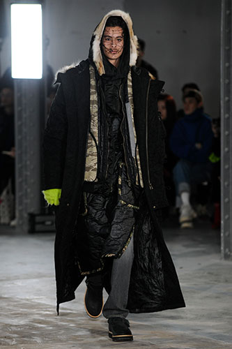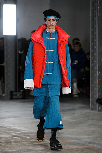 FACETASM’s Autumn/Winter 2018 collection marks a close with relationship with The Woolmark Company, which saw Ochiai travel back to the source of Merino wool, visiting an Australian wool-growing property late last year. The resultant collection, EMOTION, includes 100 per cent Wool Denim trousers and jacket, 100 per cent wool gabardine wide-leg trousers, pleated skirt and down jacket along with innovative wool fur fabrications.