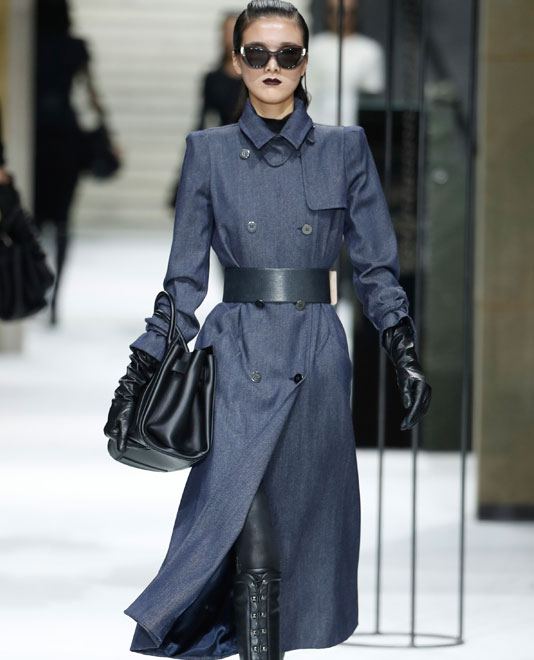 Max Mara has utilised innovative 100 per cent wool denim fabrics that replicate the look and style of traditional denim, but have added benefits thanks to the natural qualities of Merino wool, including increased softness and warmth. Using ecological dyeing recipes that imitate natural indigo, the wool denim pieces are fade resistant. Wool denim features in the form of a double-breasted long-line coat and tailored pants and jacket.