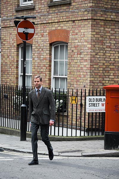 To this end, they began collaborating with fabric mills in order to acquire bolder, brighter fabrics. “It’s something Savile Row used to do more, but many had got out of the habit,” Dixon says. “So we’d go up to Huddersfield, Bradford, Scotland and so on, and actually design our own fabrics.” Austerity, as the expression goes, is the mother of invention, and James and Dixon found themselves beneficiaries of the recession gripping the cloth industry at that time. “A lot of the mills that wouldn’t normally have bothered talking to us were a bit more open because business was tough,” he says. “So we could say, ‘OK, Could we change that colour, make that check bigger, that stripe smaller and so on.’”