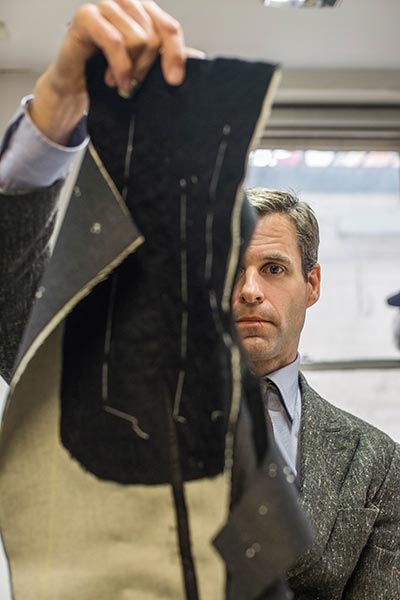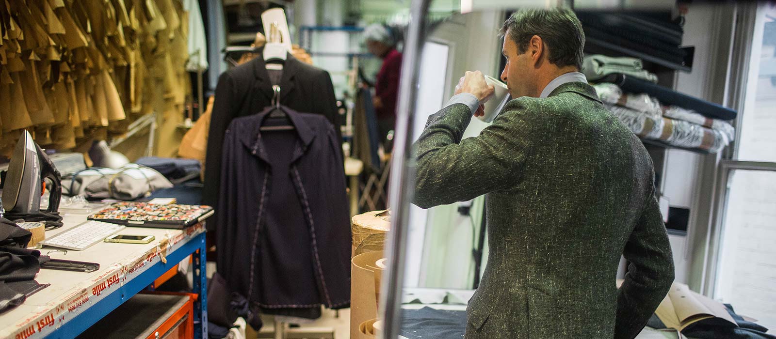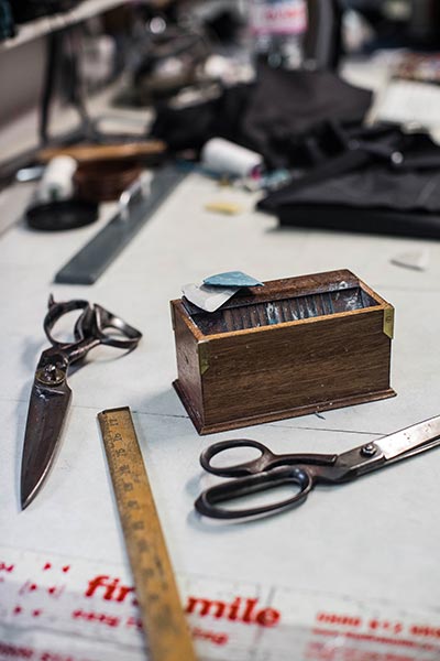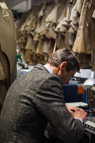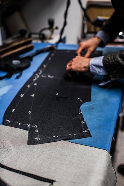 “So, we have a core system - I call it The Mothership – which we then adapt and develop according to the client. If his shoulders have a tendency to come forward, then we put cuts into the canvas underneath the cloth to accommodate it. We put a huge emphasis on eye – measurements can only tell you so much. As well as a ‘size pattern’ – the client’s measurements – we have an ‘attitude pattern’, which refers to quirks, bumps, forward-leaning shoulders, incongruities.”