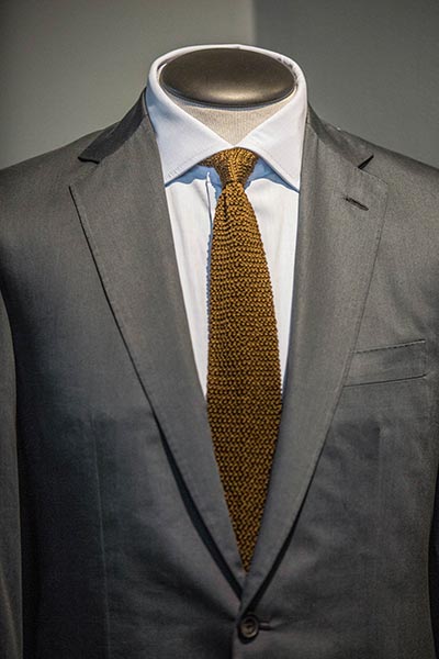 “The Naked Suit? That’s a collaboration we did with Spencer Tunick, the artist who organises epic nude photoshoots in public places,” laughs the company’s co-founder Sean Dixon. “It’s made of silk organza. Because it’s totally transparent, you can see all the coat’s anatomy inside. It’s like having a conventional suit x-rayed so that you can see all the workmanship, all the detail, how it’s put together – everything that goes into making a bespoke suit. It was a real nightmare to do, but it’s an effective showpiece.”