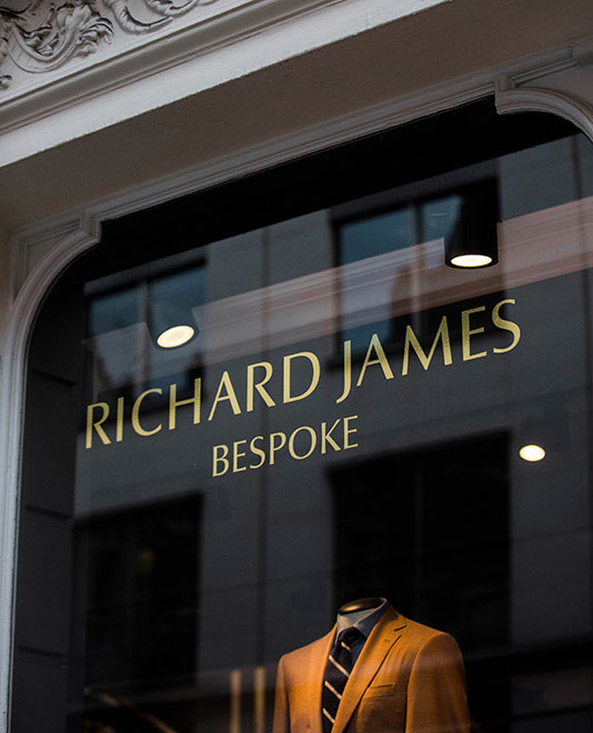 Stepping inside Richard James’s bespoke atelier at 19 Clifford Street, just a few paces away from Savile Row’s midpoint, newcomers are offered an immediate sign that this establishment bucks the more traditional tenets of its surrounds: a transparent suit jacket, framed and mounted upon the wall directly opposite the entrance.