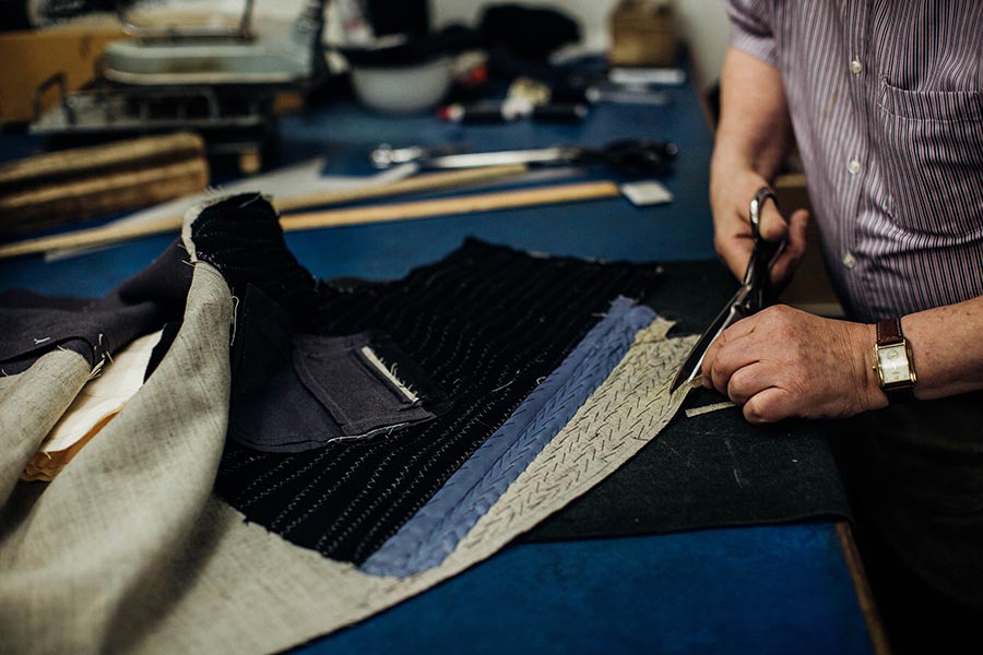 A friendly, highly collaborative culture is, Taub says, conducive to this goal. “Our team is more like a circle than a pyramid,” he says. “It’s a level playing field – everyone’s as important as everyone else, and there’s a real team spirit.” A barrier-free relationship also prevails, he says, between the house and its clients. “There’s no smoke and mirrors here – customers come down to the workshop and get to know their tailors,” he says. “That’s important, because when a tailor gets a sense of the character behind the garment they’re making, and knows their face, as with a sculptor knowing their subject, it gives a greater sense of what the end result is supposed to be. Tailoring’s not just about sewing bits of cloth together.”