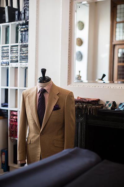 The other key tenet of their partnership, from the start, has been a less formal approach. “We’d come from a classic Savile Row house, and our feeling was that we didn’t want that same exclusive club-like atmosphere,” explains Anderson. “Hackett, who were here at No 13 for a year before us, had refurbished the premises and it was already very clinical, very minimalistic – the style at that time – and we decided to make it warmer, more attractive to people who perhaps were not used to going into Savile Row establishments.” The pair also opted for first-name terms with clients (“Before it had been all ‘Mr’ and ‘sir’,” recalls Anderson).