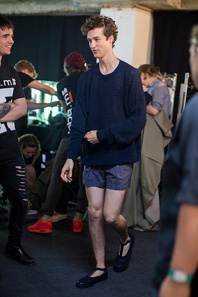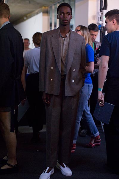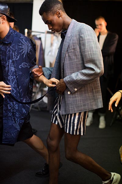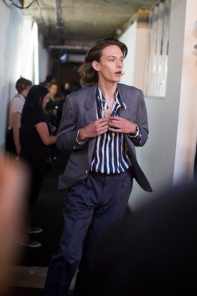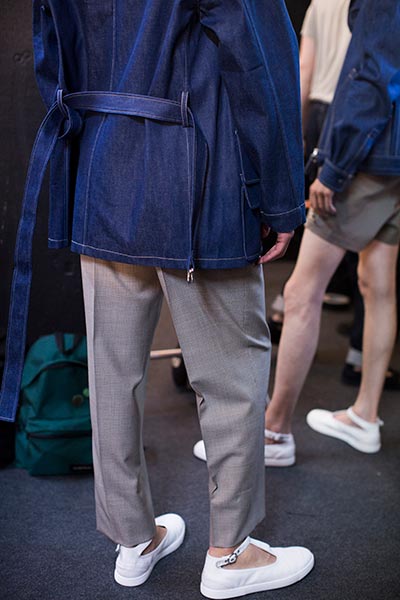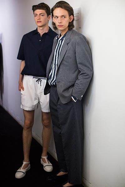 Essentially acting as a ready-to-wear arm of Norton & Sons, a more traditional tailoring house, at its seasonal presentations at London Collections Men, E. Tautz proposes new ways of wearing suiting that cater to a younger, or more casual, dresser. For spring/summer 2017, that involved the pulling apart of suits (most of them cut wide from the body in a nod to the late-1980s era of power dressing) and mixing them with tailored shorts, knitwear and lightweight outerwear. The resultant look was one of nonchalance, of pinstripes mixed checks, that suits today’s more relaxed mode of menswear.