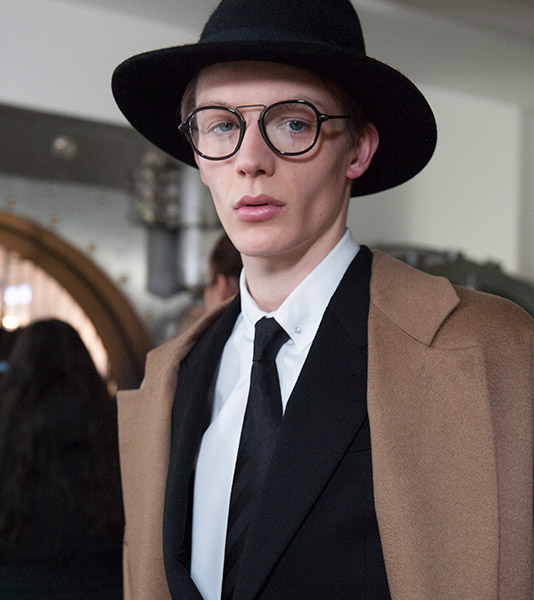 The collection, shown in a runway show in Place Vendôme, presented a fulsome account of the contemporary man’s wardrobe, demonstrating Cerruti’s status as a go-to outfitter for the world’s most stylish. In a colour palette predominantly of black, grey and camel – with hints of rich tones, such as bottle green, purple and burgundy – the collection showcased a slightly languid, 1940s silhouette, with a relaxed soft shoulder, longer jacket length and high-waisted trouser. Highlights included pleat-front trousers, round-neck knitwear, belted overcoats and double-breasted pinstripe suiting. In terms of fabrics, texture was key, making the show’s audience want to reach out to touch the garments as they came down the runway. These included checked jacquard, shearling, wool Prince-of-Wales check and innovative weaves. “Cerruti is all about rich, textural fabrics, and we used these as a reference point, finding new ways of presenting them to continue pushing Cerruti into the future.”